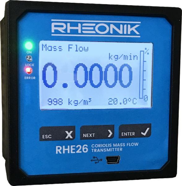 Elektroonikas on suur LCD-ekraan ja kolm nuppe parameetrite muutmiseks. LCD-ekraani taustvalgustuse värv muutub, kui mõõturi jõudlus halveneb, mistõttu protsessihalduril on lihtne tuvastada muutusi ekraanil. Elektroonika sisaldab USB-liidest ja RHEComi arvutitarkvara, et parameetrite konfigureerimine oleks kiire ja lihtne.