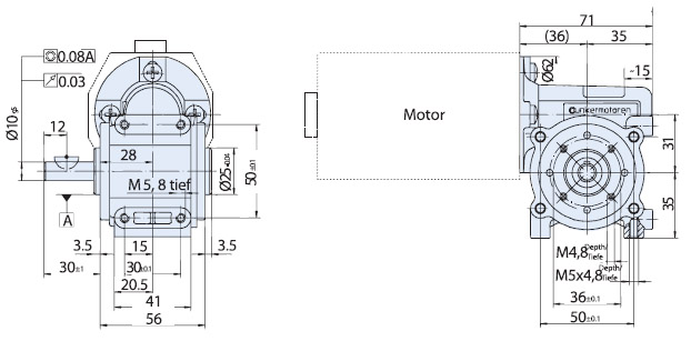 | Reduktori ülekandesuhe | L (mm) | Reduktori lubatud pidev koormus (Ncm) | Reduktori kasutegur (%) |