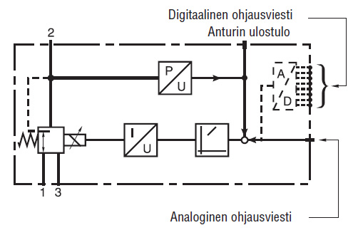 - Juhtsignaal (analoog või digitaalne) võrreldakse väljundrõhuga ja reguleeritakse reaalajas: closed loop control.