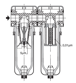 • Eelfilter/regulaator + submikrofilter seade koosneb 5 μm eelfiltrist/ regulaatorist (ilma manomeetrita) ja 0.01 μm submikrofiltrist reguleerimisdiapasooniga: 0.5 – 10 bar (võimalus ka muudele diapasoonidele)