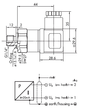 Rõhule 0-400 bar, väljundsignaal 4-20 mA, laevakasutuse heakskiiduga, IP 65