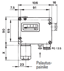 Rõhule -0,9-40 bar, reset-nupuga, lõõtsanduriga, IP65