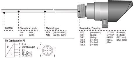 DST100 -50…150c, G1/2" ühendus, 100 mm mõõtevarda pikkus 2000.01.002