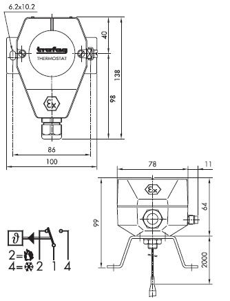 Mudel Elektrer number Diapasoon°C Hüstereesi reguleerimine°C õhutemperatuur °C Maks. andur temperatuur °C