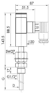 Komplektis on G 1/2” keermega nikeldatud messingust sukeltoruga andur.pikkus 150 mm, Ø 10 mm