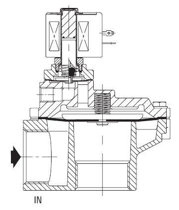 2-tee, 1 1/2"- 2 1/2", Normaalselt suletud, rõhkude vahele 0,35-8,5 bar