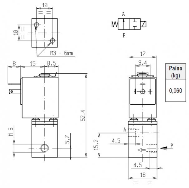 2-tee, M5, Normaalselt suletud, rõhkude vahele 0-10 bar