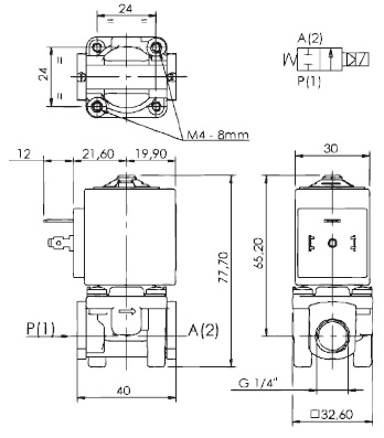 2-tee, 1/4", Normaalselt suletud, rõhkude vahele 0-10 bar