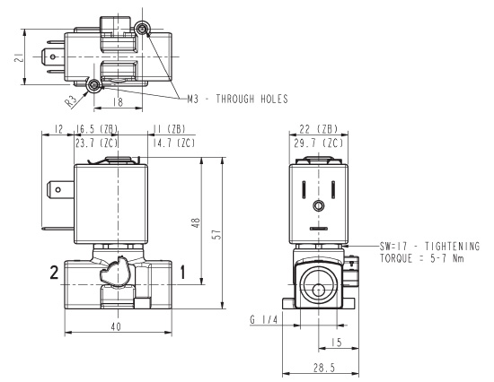 2-tee, 1/4", Normaalselt suletud, rõhkude vahele 0-15 bar