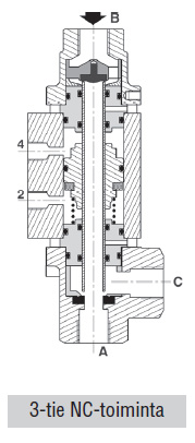 3-tee, 3/8"-1", Normaalselt kinni/lahti, rõhk 0-40 bar