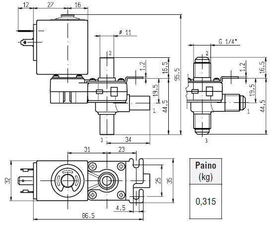 3-tee, voolikühendus ja 1/4", Universaal, rõhkude vahele 0-1,5 bar