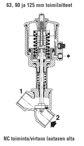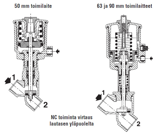 NC – normaalselt suletud – voolamine ventiilitaldriku alapoolelt |