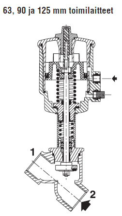 NC – normaalselt suletud – voolamine ventiilitaldriku ülapoolelt (soovitame kiiretoimega ventiile aurule) |